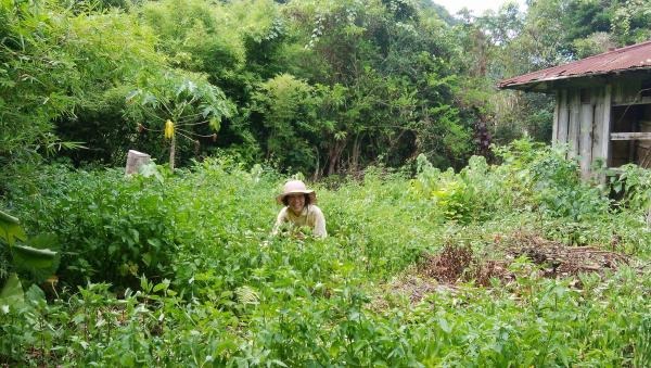 ハイビスカス畑!?で草取りをしていたら ゲストハウス カムディさんが通りかかり写真を撮ってくれました。